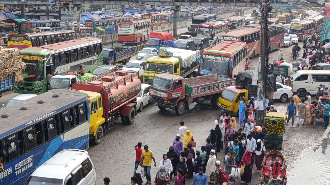 সরেজমিনে দেখা যায়, চিটাগাং রোডের কাউন্টারগুলোতে এখনো যাত্রীদের উপচে পড়া ভিড়। যানজট ও বাস সংকটের কারণে অনেক যাত্রীকে বাসের জন্য অপেক্ষা করতে দেখা গেছে।